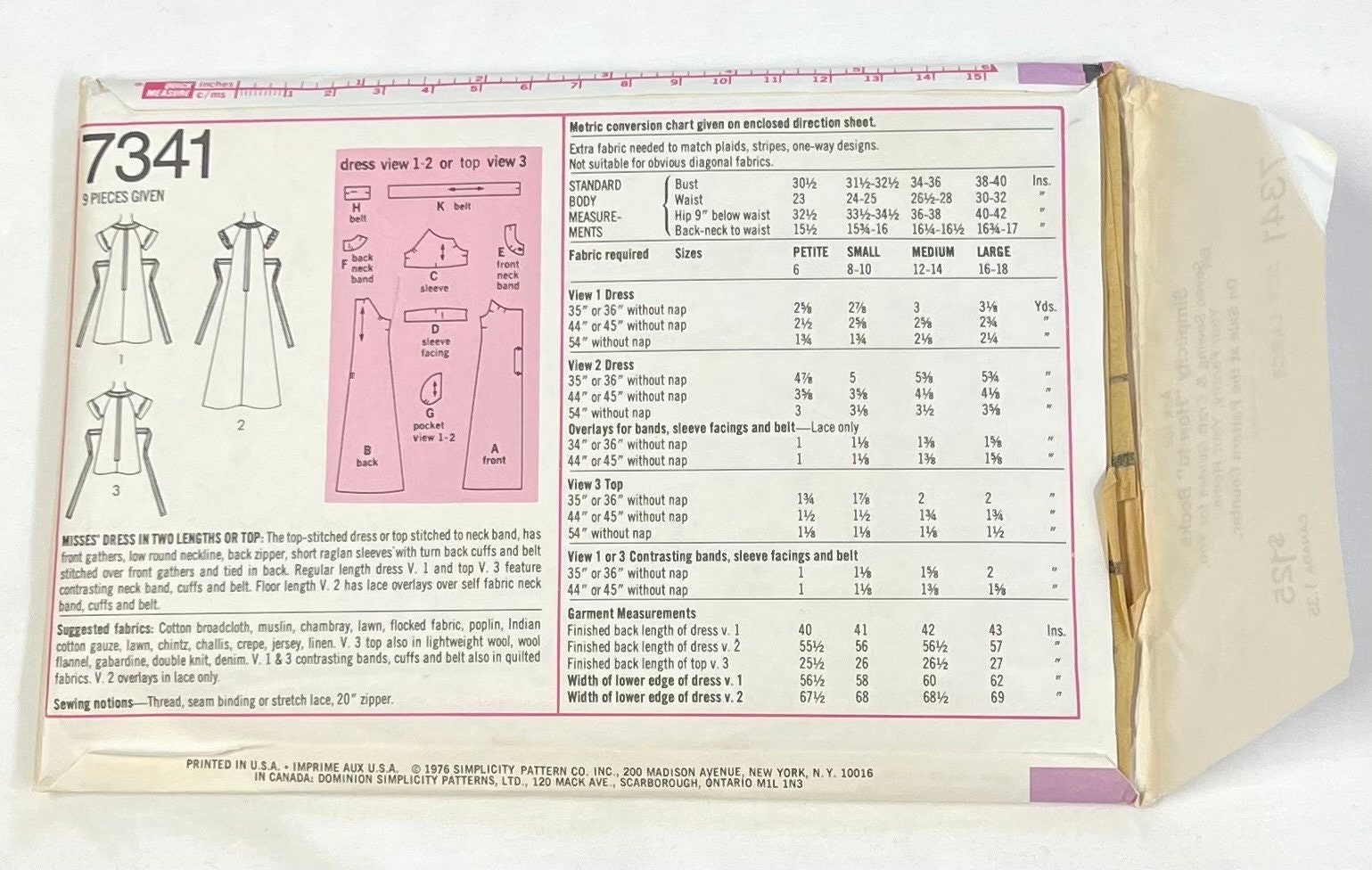 Simplicity 4341 Dress Size 11 Bust 29 Used Sewing Pattern