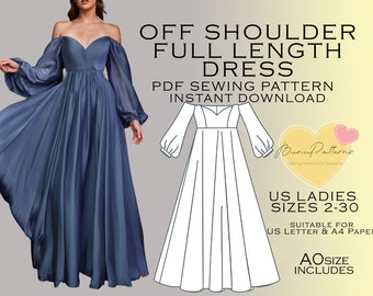 Off The Shoulder Sweetheart Dress Sewing Patterns Etsy Uk